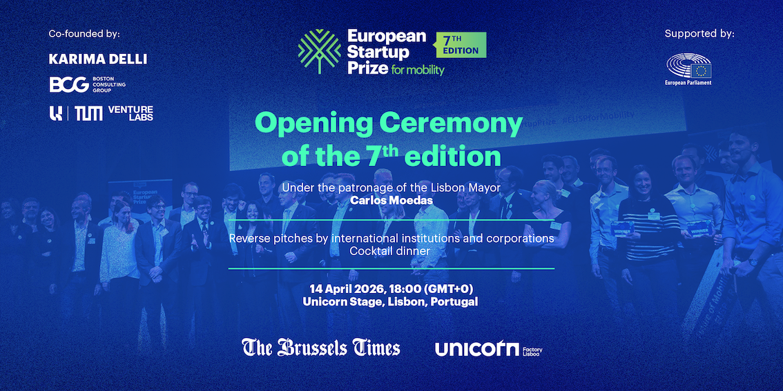 Junta-te a nós no Unicorn Stage, na Unicorn Factory Lisboa - Beato Innovation District, para a emocionante cerimónia de abertura da 7ª edição do European Startup Prize for Mobility, no dia 14 de abril de 2026, às 18h00.