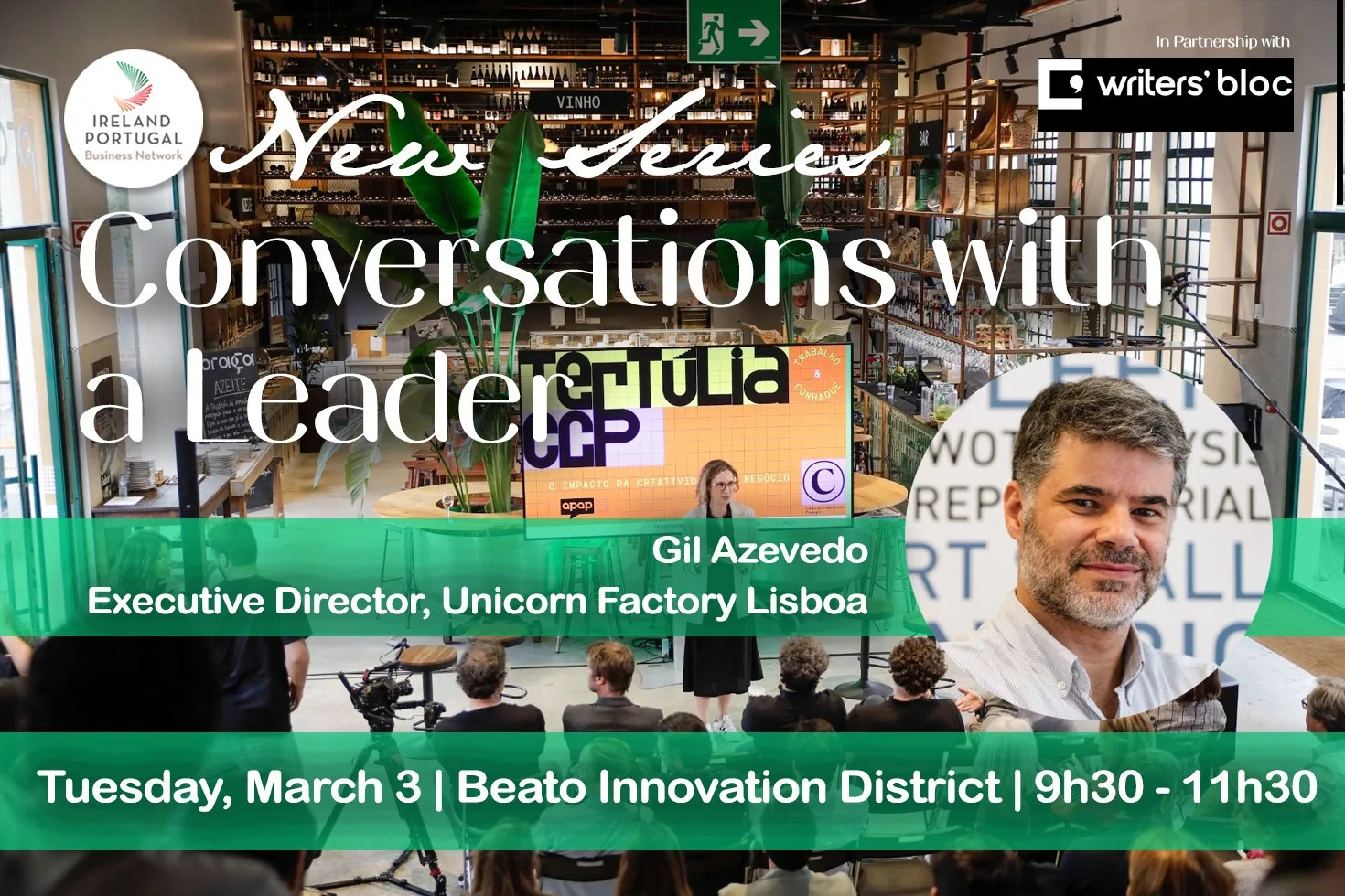 A Ireland Portugal Business Network anuncia o primeiro evento da sua nova série "Conversations with a Leader", realizada em parceria com a Writers' Bloc, membro da IPBN.