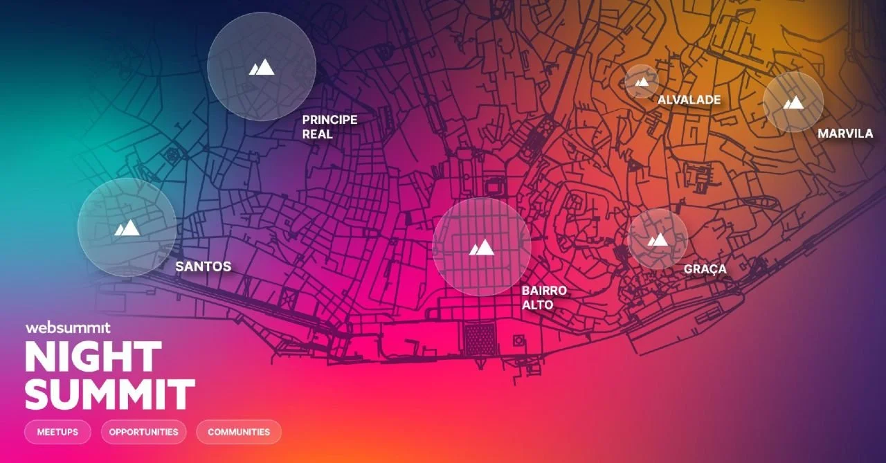 A Night Summit começou em Dublin como um circuito de bares noturnos que permitia aos participantes conhecerem-se após um dia de palestras. Este ano, a Web Summit vai renovar o foco em encontros comunitários mais intimistas, fazendo com que grandes espaços pareçam mais pequenos e ligando pessoas por toda a Lisboa.