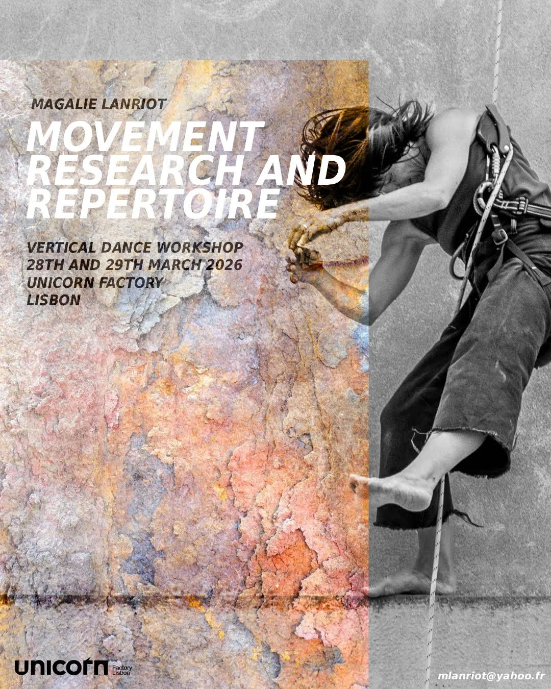 Esta experiência imersiva de dois dias oferece uma imersão no mundo da dança vertical através da pesquisa de movimento e do repertório reflexivo de Magalie Lanriot.